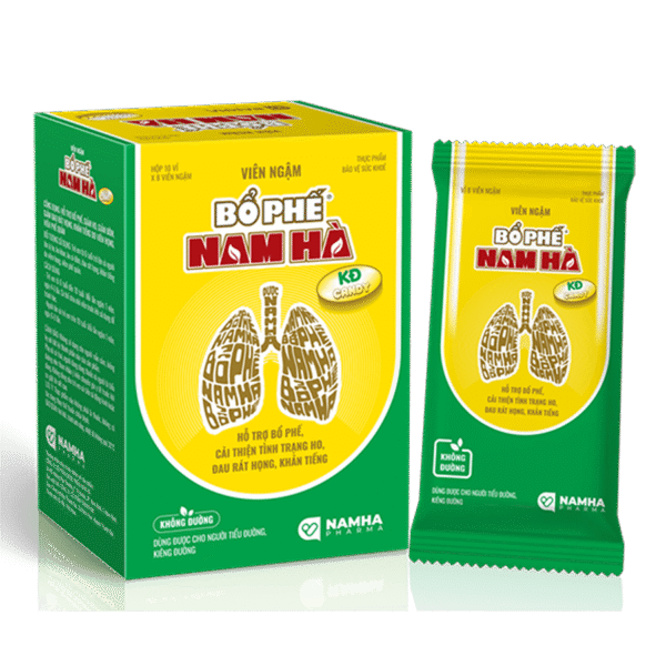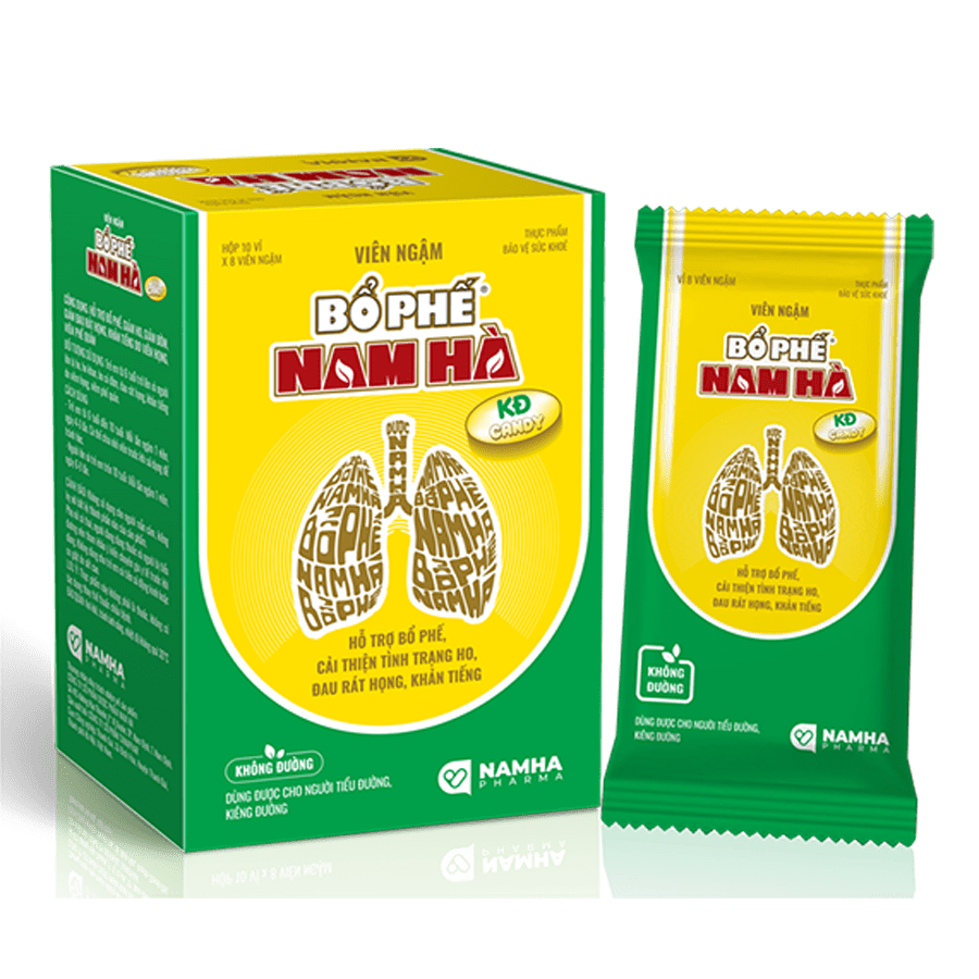 TPBVSK Viên ngậm Bổ phế Nam Hà KĐ Candy hỗ trợ giảm ho, bổ phế, hỗ trợ giảm đờm, giảm đau rát họng, khản tiếng do viêm họng, viêm phế quản. Sản phẩm dùng được cho người tiểu đường, kiêng đường.